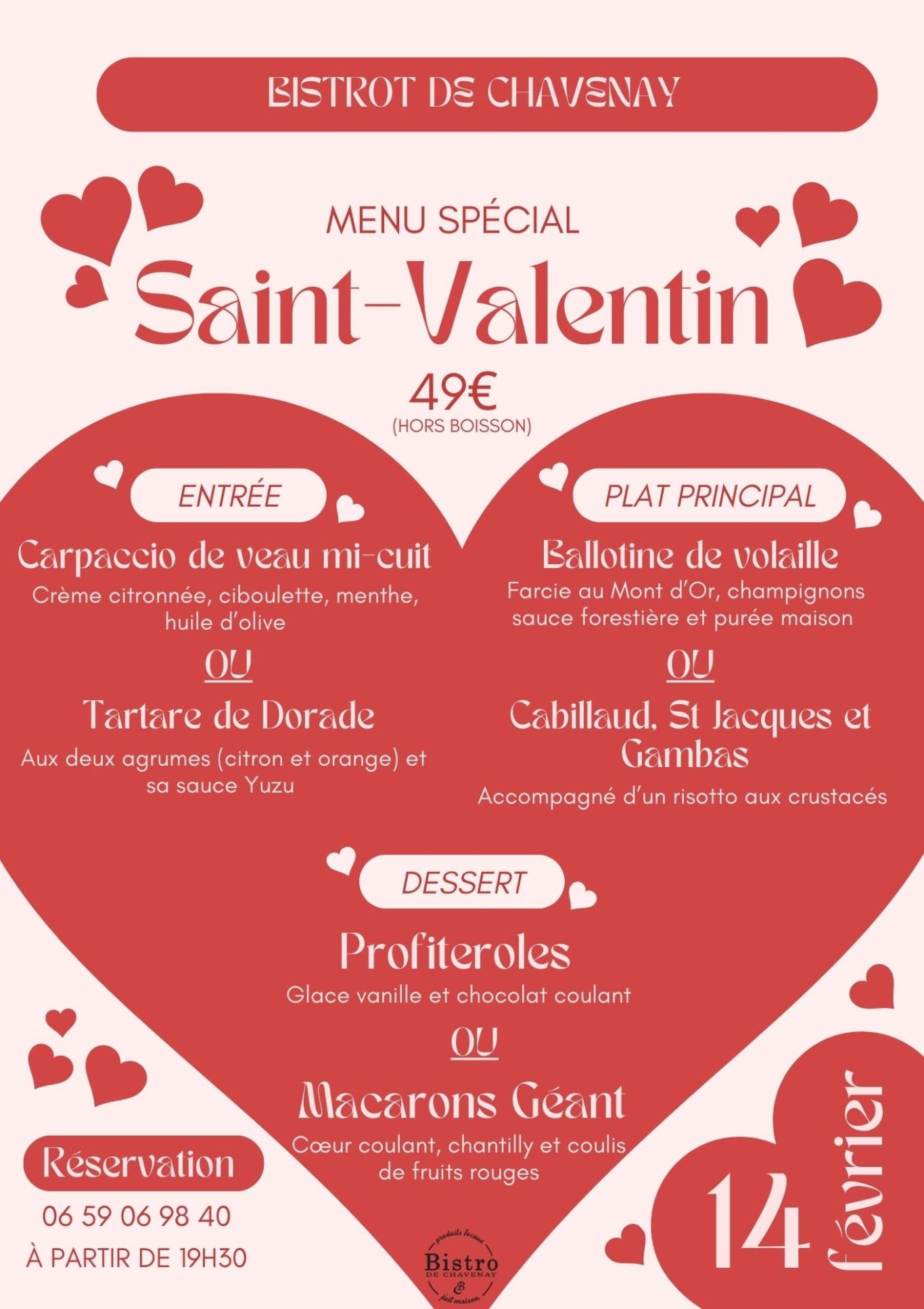 Que vous souhaitiez surprendre, séduire ou simplement profiter d’un moment suspendu, notre menu de Saint‑Valentin est l’occasion parfaite de vivre une soirée inoubliable.